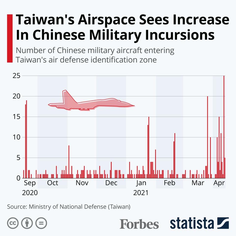 "График" пролетов самолетов ВВС Китая воздушной "зоны идентификации" Тайваня: